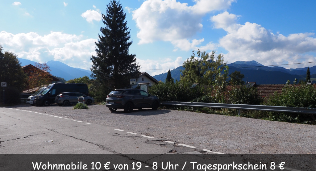 Stellplatz Königssee: Königsseer Fußweg 81, 25 €/24 Std, 10€/8 Std.