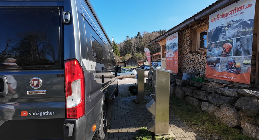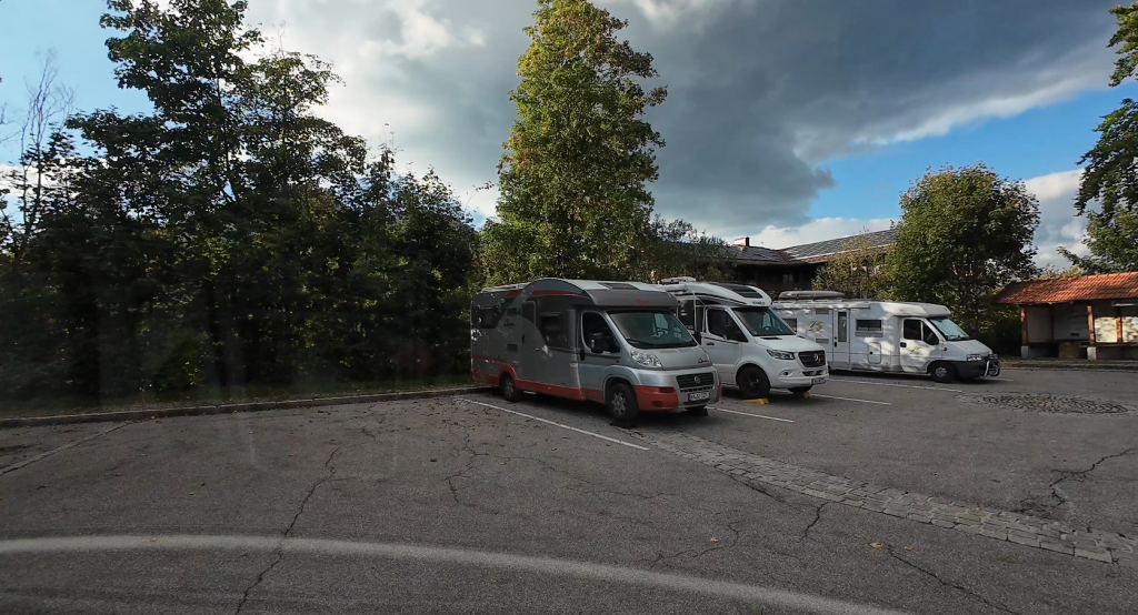 Wie schon im letzten Jahr, als wir 4 Tage die Womo-Tauglichkeit der Gegend getestet haben, haben wir hinter dem Tegernseer Bahnhof an der Klosterwachtstraße für 10€ übernachtet. Zur Ver- und Entsorgung wählen wir den bekannten Stellplatz in Gmund-Ostin. Frischwasser kostet dort 50 Cent/50 Liter, Entsorgung ist kostenlos.