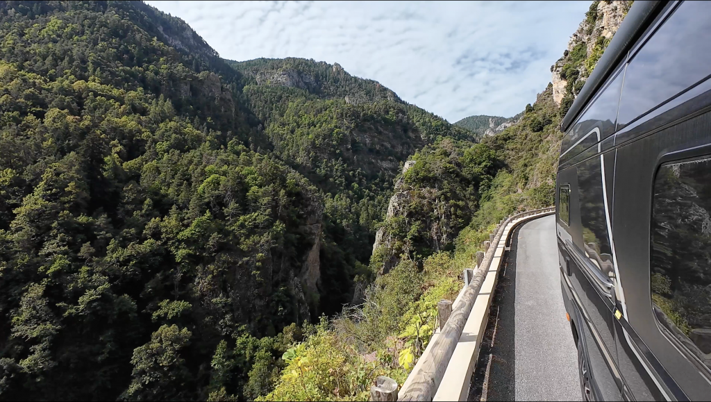 Bei der Auffahrt zum nächsten Pass, dem Col de Turini, erwartet uns mal wieder eine besonders komfortable Ortsdurchfahrt in La Bollene de Vésubie. Zum Glück Einbahnstraße, aber mit einer Baustelle zur Zeit besonders eng.